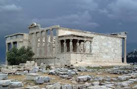 λεπτομέρεια δυτικής ζωφόρου - το Ερέχθειο, το μέρος που χτίστηκε είναι το ίδιο με το μέρος που είχε γίνει ο αγώνας μεταξύ Αθηνάς και Ποσειδώνα για το ποιος θα δώσει το όνομά του στην πόλη, σύμφωνα με το μύθο. Αποτελείται από δύο τμήματα, στο ανατολικό που ήταν αφιερωμένο στην Αθηνά βρισκόταν το λατρευτικό ξόανο της θεάς και στο δυτικό που λατρευόταν ο Ποσειδών Ερεχθεύς και βρισκόταν το πηγάδι με το αλμυρό νερό που είχε δωρίσει. Στο νοτιοδυτικό άκρο του ναού είναι και οι Καρυάτιδες. Όλες πλην μιας.